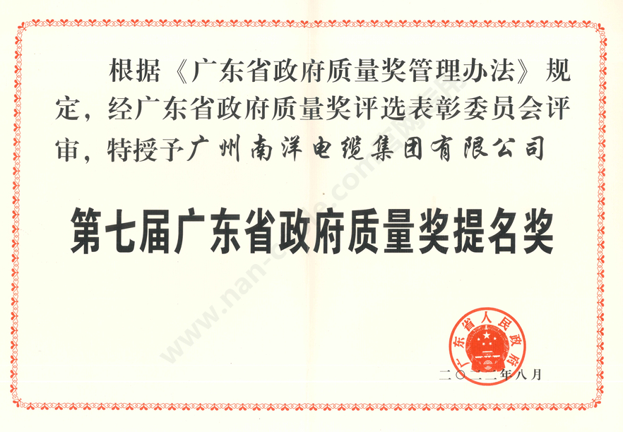 • NAN南牌6-35kV交聯聚乙烯絕緣電力電纜被評為廣東省名牌產品